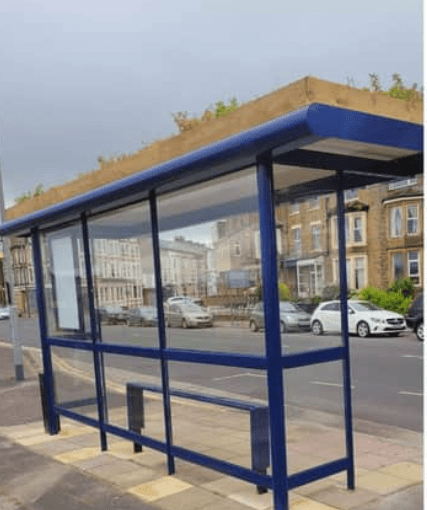 But with summer 2024 on its way its replacement has finally arrived – and a special replacement it is: – Morecambe’s first “living-roof” or bee-friendly bus shelter!