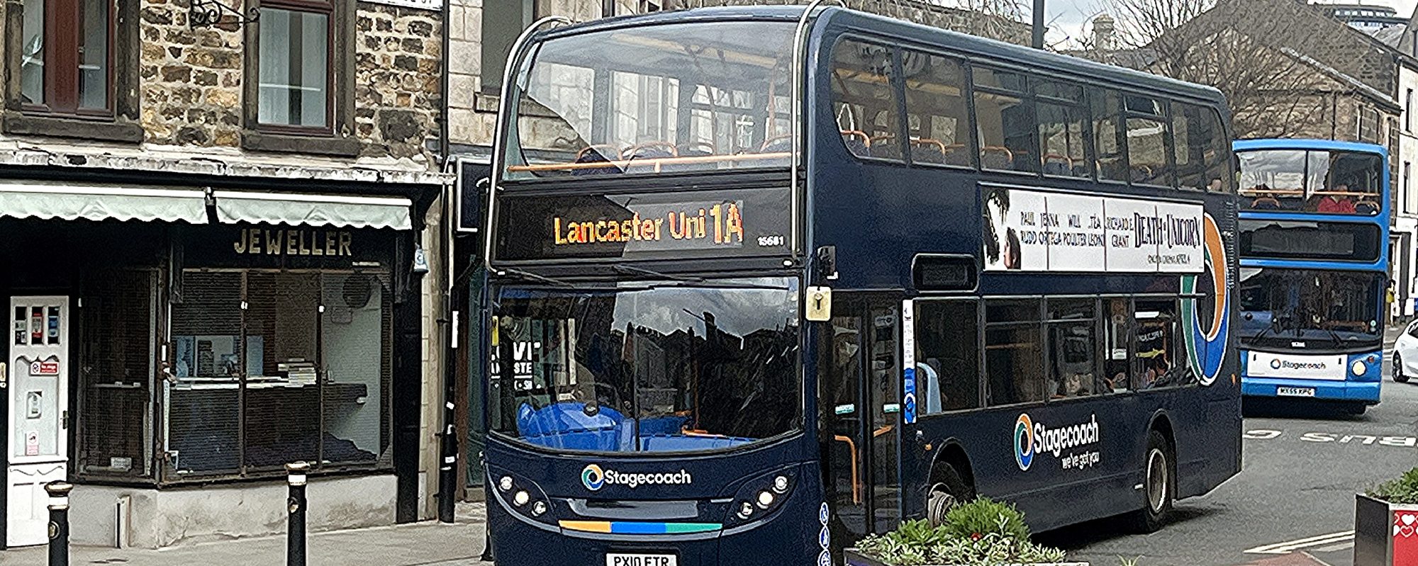 But surely the following day, Saturday, 27th December, won’t be a problem. Stagecoach is providing a Saturday service on the days between Christmas and New Year so that should be straightforward, shouldn’t it? Well, not exactly. A complication is that services to the University have different timetables depending on whether it is term time or vacation at the university. In particular, whereas in term time services 1 and 1A combine to provide a ten-minute frequency along the A6, during the vacation the 1 is withdrawn, leaving the 1A to run every 20 minutes along this stretch.